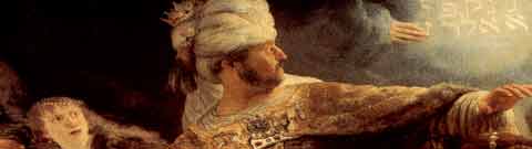 »Skriften på væggen« i Rembrandt Harmensz van Rijn: Balthasars gæstebud, ca. 1635; olie på lærred, 168 ´ 209 cm, The National Gallery, London.
