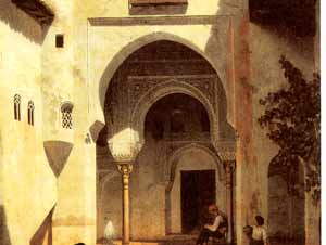 Alhambra, det berømte slot i Granada, som var maurernes sidste bastion, inden de efter mere end 700 års besættelse blev fordrevet fra Spanien, blev en af de vigtigste stationer på disse rejser, og i 1832 leverede Washington Irving med sine Tales of the Alhambra et mønster for orientalske drømmerier. Også i Danmark broderede man flittigt videre på arabeskerne. I 1848 skrev Chr.K.F.Molbech betaget om Alhambra i rejsebogen En Maaned i Spanien, og da hans ven, arkitekten Ferdinand Meldahl, kom på en rejse til Orienten, bad han så mindeligt denne om at sende ham en tegning af ”en rigtig smuk og hyggwelig Kiosk med Myrter og Roser omkring, med mauriske Arabesker og Buer, der minde om Alhambra”. Da Meldahl selv kom til Alhambra måtte han imidlertid erkende, at her stod han over for en skønhed, han ikke kunne eftergøre. Han skrev, at Alhambra som helhed var ”et Vidunder, et Drømmebillede”, og at Løvegården var ”saa delikat, saa rig, saa kunstnerisk gjennemført, at det i det mindste for mig synes en Umulighed at frembringe noget lignende”.