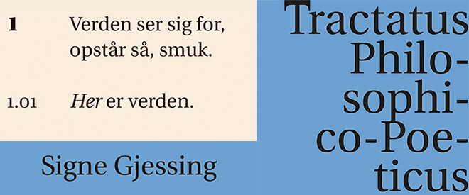 Signe Gjessings digt Tractatus Philosophico-Poeticus er et poetisk opgør med Ludwig Wittgensteins Tractatus Logico-Philosophicus fra 1922. Nomineret til Weekendavisens litteraturpris i 2019. Læs mere | ||