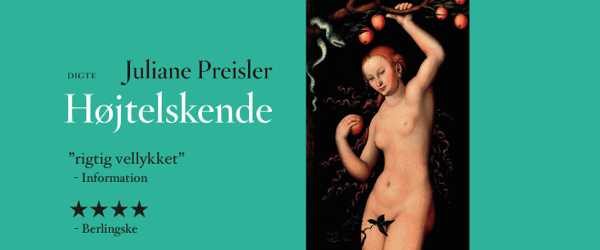 To mennesker sammen. Juliane Preisler har skrevet digtsamlingen Højtelskende om kærligheden mellem to, fra barndommens forelskelser til senere aldres oplevelser af lykke og tab. Læs mere | ||