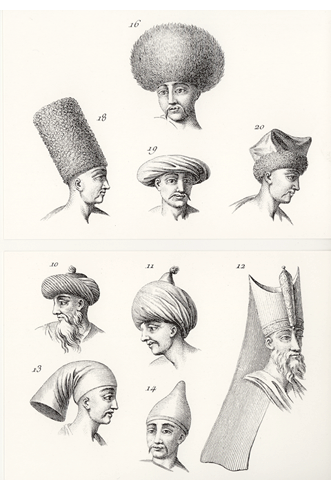 I Carsten Niebuhrs Rejsebeskrivelse fra Arabien og andre omkringliggende lande bind 1 og 2 er der i alt gengivet 126 kobberstik. Vi har tryk et udvalg i en lille serie á fire postkort i formatet 10,5x14,8 cm.